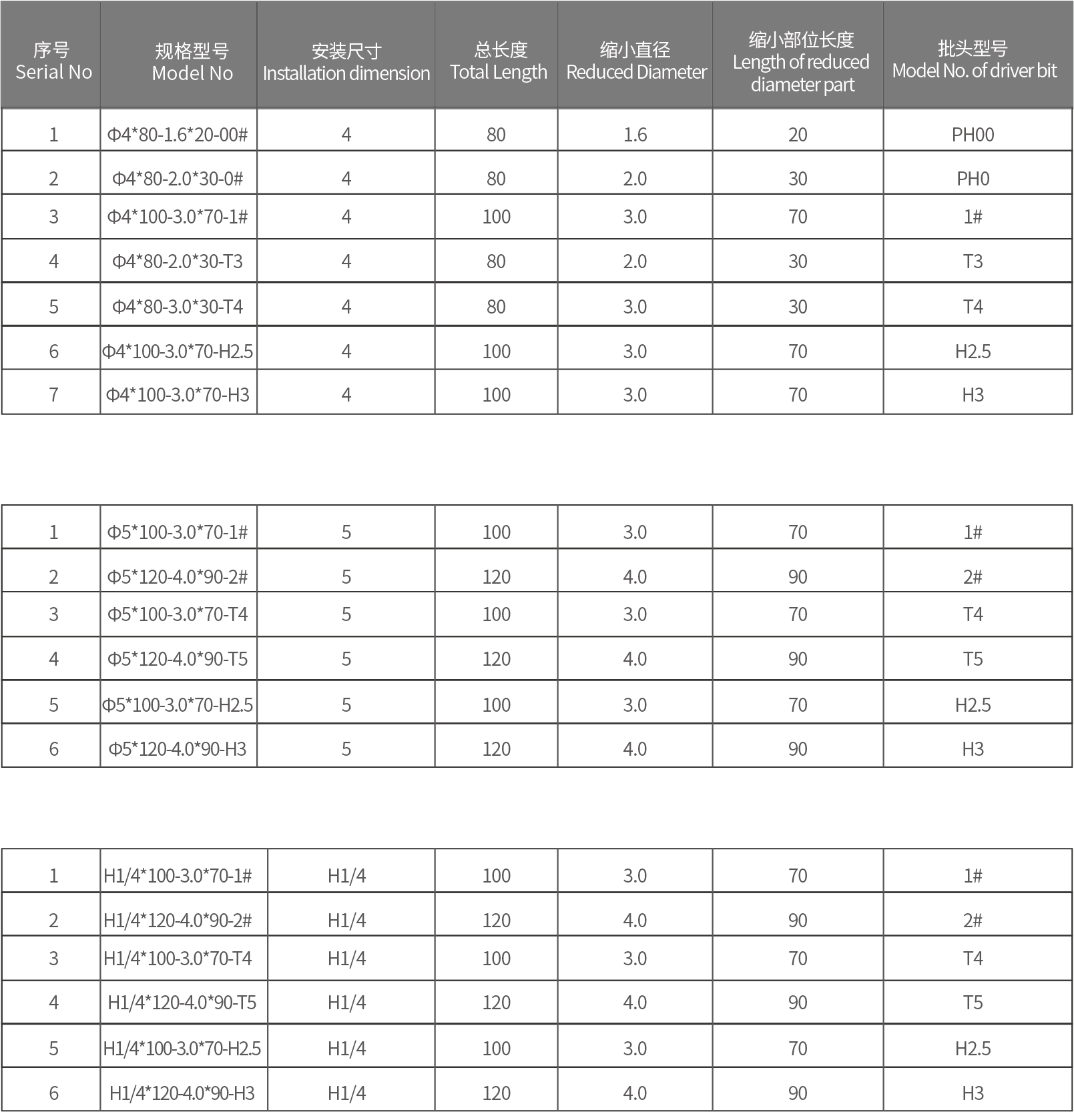 批頭 ΦD*L-A*B-PH/H/T(PH普通十字,H六角,T梅花)
