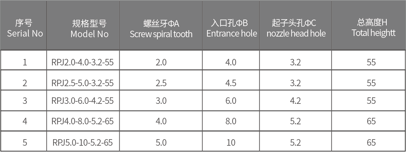 批頭規(guī)格說明: