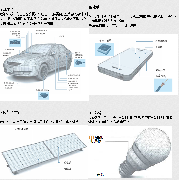 LCD元件,手提電腦L CD元件,電池接線端子,光學(xué)磁頭,LCD和等離子TV電源板,扁平馬達(dá),馬達(dá)控制線圈散熱器,空調(diào)電扇馬達(dá),電腦電扇馬達(dá),制動(dòng)馬達(dá),功率調(diào)節(jié)器等;
